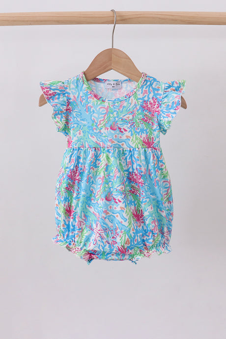 Green floral print bow ruffl...