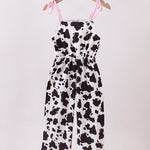 Make a statement in this playful Black Cow Bow Jumpsuit—where whimsy meets style. Featuring a charming cow print design and a signature bow detail, this one-piece wonder is perfect for anyone who loves bold fashion with a fun twist. The jumpsuit silhouette offers comfort and confidence, whether you're heading to a casual hangout or turning heads at a party. Embrace your quirky side and let your personality shine through!