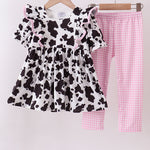 Make a statement with this adorable black cow bow ruffle pants set! Featuring a charming cow print design paired with delicate ruffled hems and a sweet bow accent, this set brings whimsical style to any wardrobe. Perfect for little fashionistas who love standing out, the soft fabric ensures all-day comfort while the playful details add personality to casual outfits. Mix and match with your favorite tops for endless styling possibilities!
