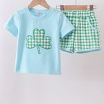 Blue clover applique shorts set