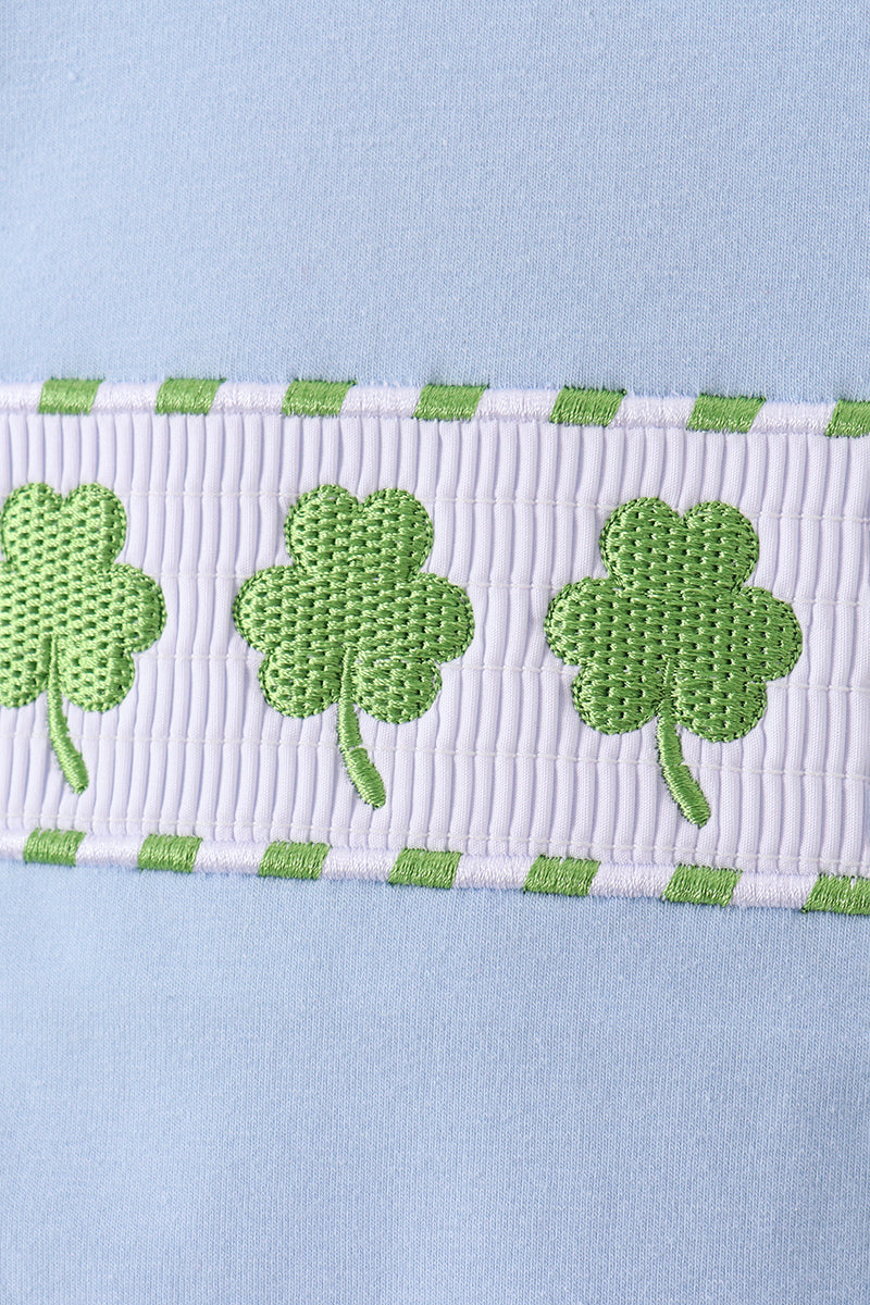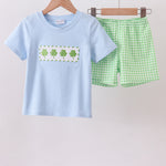 Blue clover embroidery shorts set - 12 Months is backordered and will ship as soon as it is back in stock.