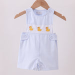 Quack-tastic style for little adventurers! This charming boy's jonjon features adorable blue duck embroidery set against classic stripes, perfect for playdates and everyday fun. The relaxed fit keeps him comfortable while the whimsical design brings smiles. Ideal for toddlers who love animals and aren't afraid to show their personality. A wardrobe essential that's as fun as it is functional.