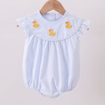 Dive into whimsy with this delightful bubble featuring charming blue duck embroidery and cheerful stripes. Ruffled edges add a playful touch that's perfect for little ones who love adorable details. Soft, comfortable, and bursting with personality, this piece brings joy to everyday wear. A must-have for anyone who appreciates cute, quirky style!