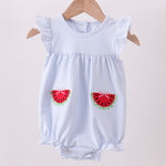 Blue watermelon stripe ruffle bubble - Newborn is backordered and will ship as soon as it is back in stock.