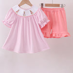 Pink bunny embroidery ruffle shorts set