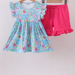 Mint island bloom 2pc ruffle shorts set