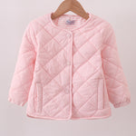 This pink quilted jacket adds a fun pop of color to your wardrobe while keeping you cozy and comfy. Its quilted design traps warmth without weighing you down, making it perfect for crisp mornings and breezy afternoons. Lightweight yet snug, it's your go-to for playful layering with a splash of cheerful style.