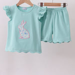 Green bunny applique shorts set