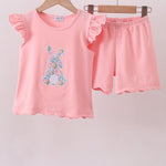Pink bunny applique ruffle shorts set - 12 Months is backordered and will ship as soon as it is back in stock.