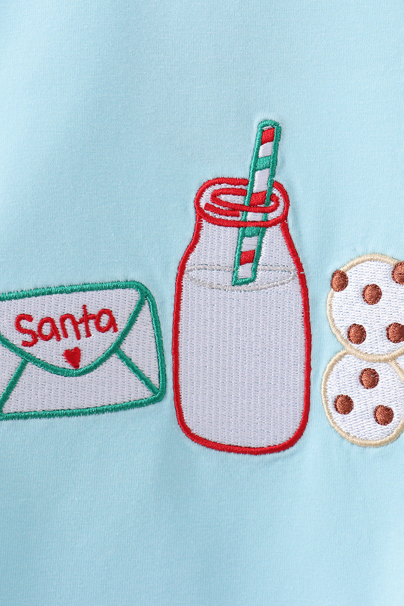Blue cookie milk santa applique bow bubble - Newborn is backordered and will ship as soon as it is back in stock.
