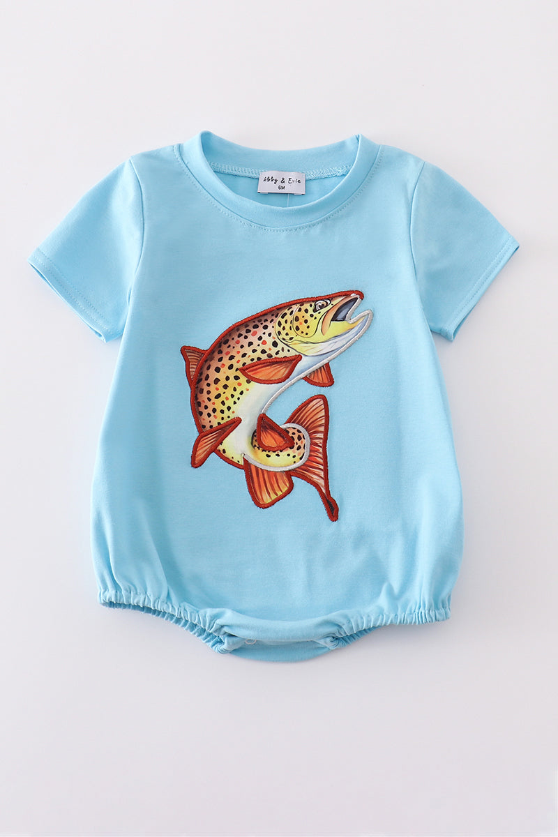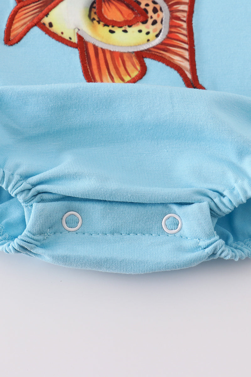 Add a splash of fun to your little one's wardrobe with our blue fish applique bubble! This quirky one-piece features a charming fish design that is sure to make a splash. Made with soft and comfortable fabric, it's perfect for playtime or naptime. Dive into cuteness with our blue fish applique bubble!