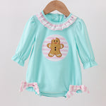 Add a dash of whimsy to your little one’s wardrobe with this Blue Gingerbread Applique Ruffle Bubble. Featuring charming gingerbread appliques and playful ruffle details, this bubble romper combines comfort with a touch of festive fun. Soft fabric ensures all-day coziness, making it perfect for everyday adventures or special occasions. Let your child shine in delightful style!