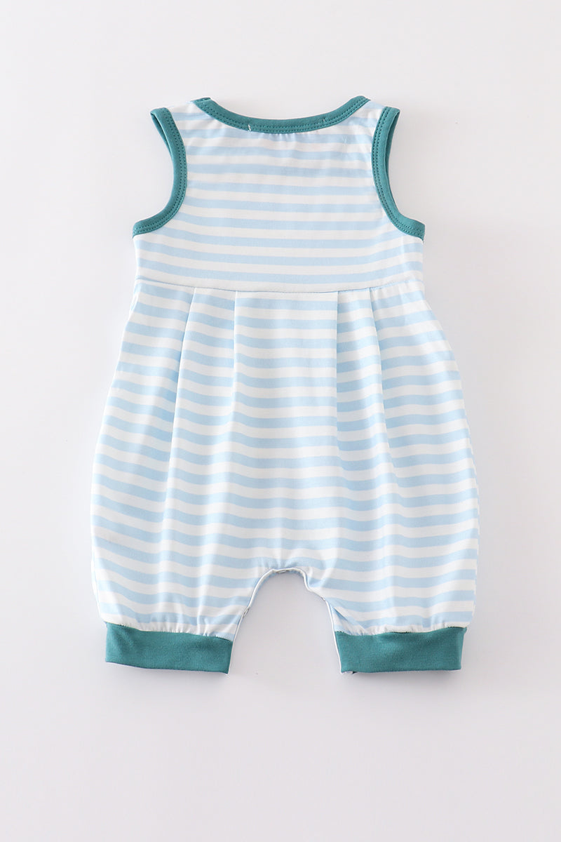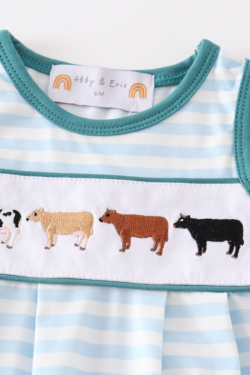 Blue stripe cow embroidery boy bubble - 18M is backordered and will ship as soon as it is back in stock.