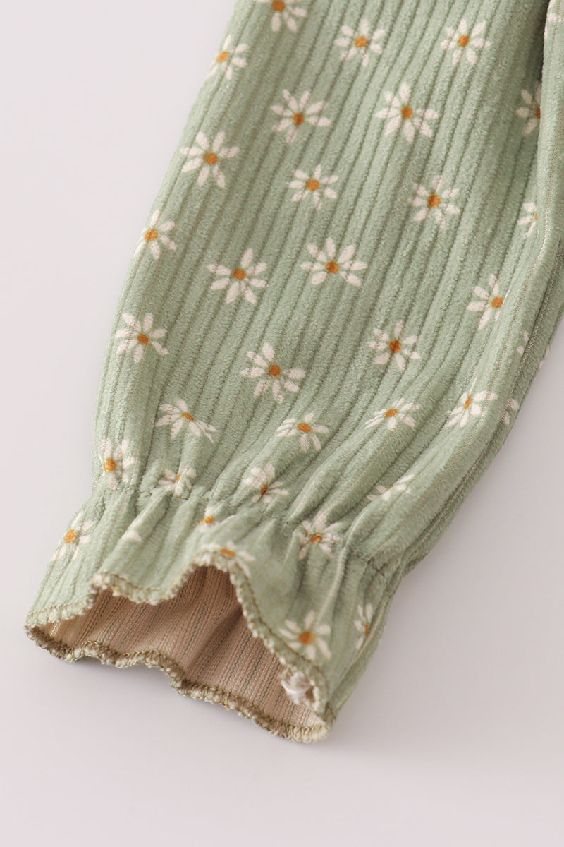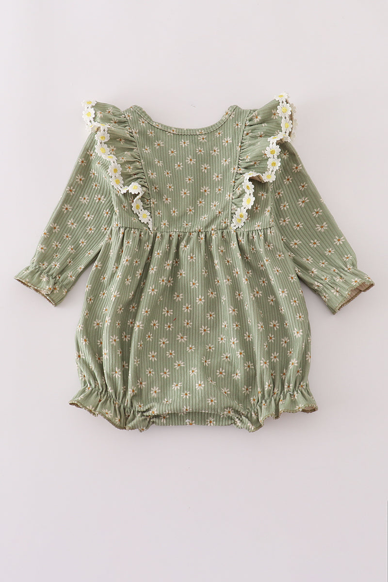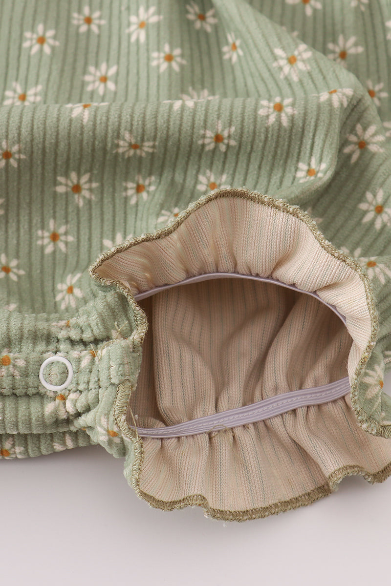 Green corduroy floral lace ruffle bubble - 6 Months is backordered and will ship as soon as it is back in stock.