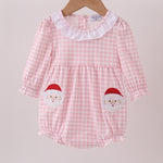 Bring a fun twist to festive fashion with this Pink Santa Claus applique ruffle bubble romper. Its playful ruffle details and vibrant Santa design add a cheerful sparkle to any holiday occasion. Soft and comfy, it's perfect for little ones to celebrate the season in style and comfort.