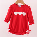 Red heart french knot bow bubble - 6 Months is backordered and will ship as soon as it is back in stock.