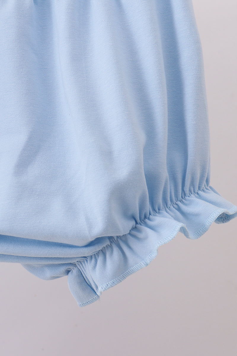 Delicate blue floral lace meets timeless smocking in this charming bloomer set. Soft, breathable fabric drapes beautifully with gentle gathering at the waist and legs, creating an effortlessly romantic silhouette. Perfect for layering or wearing alone, this set combines vintage-inspired details with modern comfort. Ideal for special occasions, photo shoots, or everyday elegance.