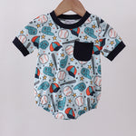 Navy baseball print bubble - 3 Months is backordered and will ship as soon as it is back in stock.