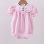 Pink stripe bunny bow embroidery bubble - 9 Months is backordered and will ship as soon as it is back in stock.