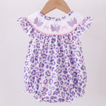 Purple leopard butterfly smocked bubble - Newborn is backordered and will ship as soon as it is back in stock.