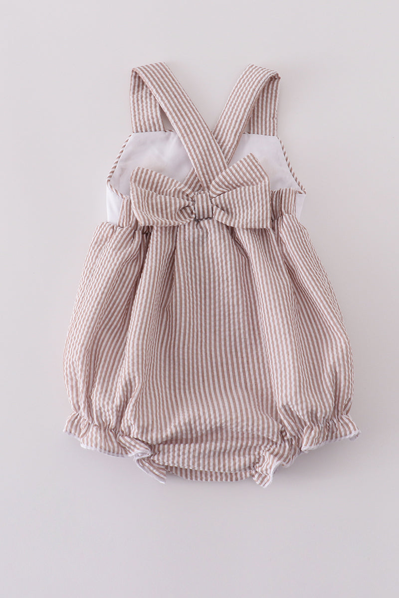 Premium brown cross embroidery bubble - Newborn is backordered and will ship as soon as it is back in stock.