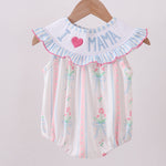 Celebrate motherhood in style with this charming blue floral bubble romper! Featuring delicate smocking details and playful ruffles, this piece combines comfort with adorable flair. The "I love MAMA" sentiment makes it perfect for expressing little ones' affection, while the soft bubble silhouette ensures easy movement and all-day wear. Ideal for special occasions or everyday cuddles, this sweet design brings joy to any wardrobe.