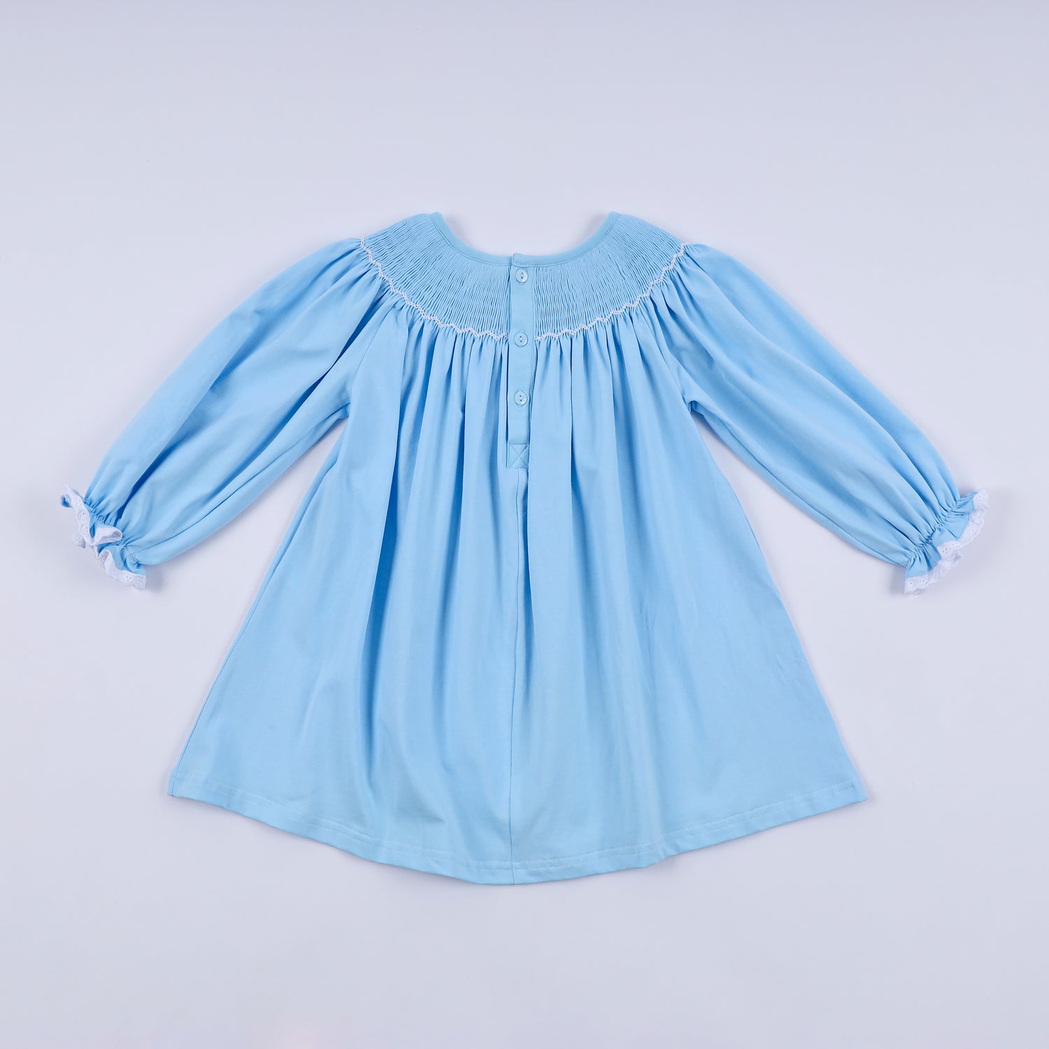 Celebrate the season in style with this charming blue nativity hand smocked dress! Featuring delicate hand-smocking details that showcase traditional craftsmanship, this dress brings festive cheer with a whimsical twist. The soft blue hue pairs perfectly with holiday gatherings, while the intricate smocking adds texture and visual interest. Ideal for special occasions, photo sessions, or spreading Christmas joy wherever she goes. A timeless piece that captures the magic of the nativity story with playful elegance.