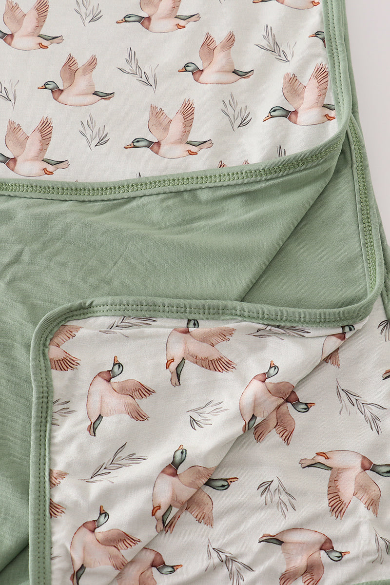 Green duck print bamboo blanket - One Size is backordered and will ship as soon as it is back in stock.