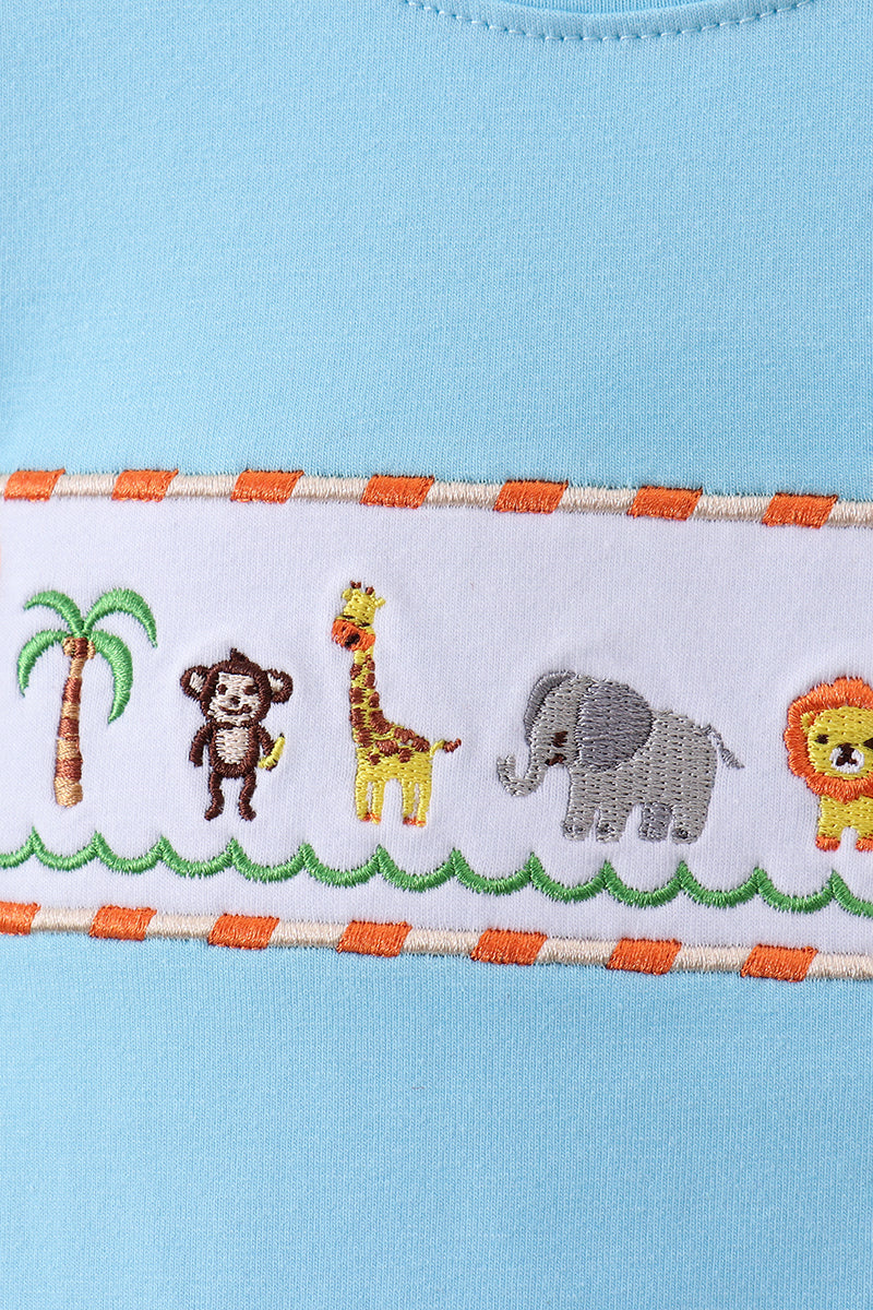 Blue animal embroidery top - 2 Years is backordered and will ship as soon as it is back in stock.