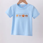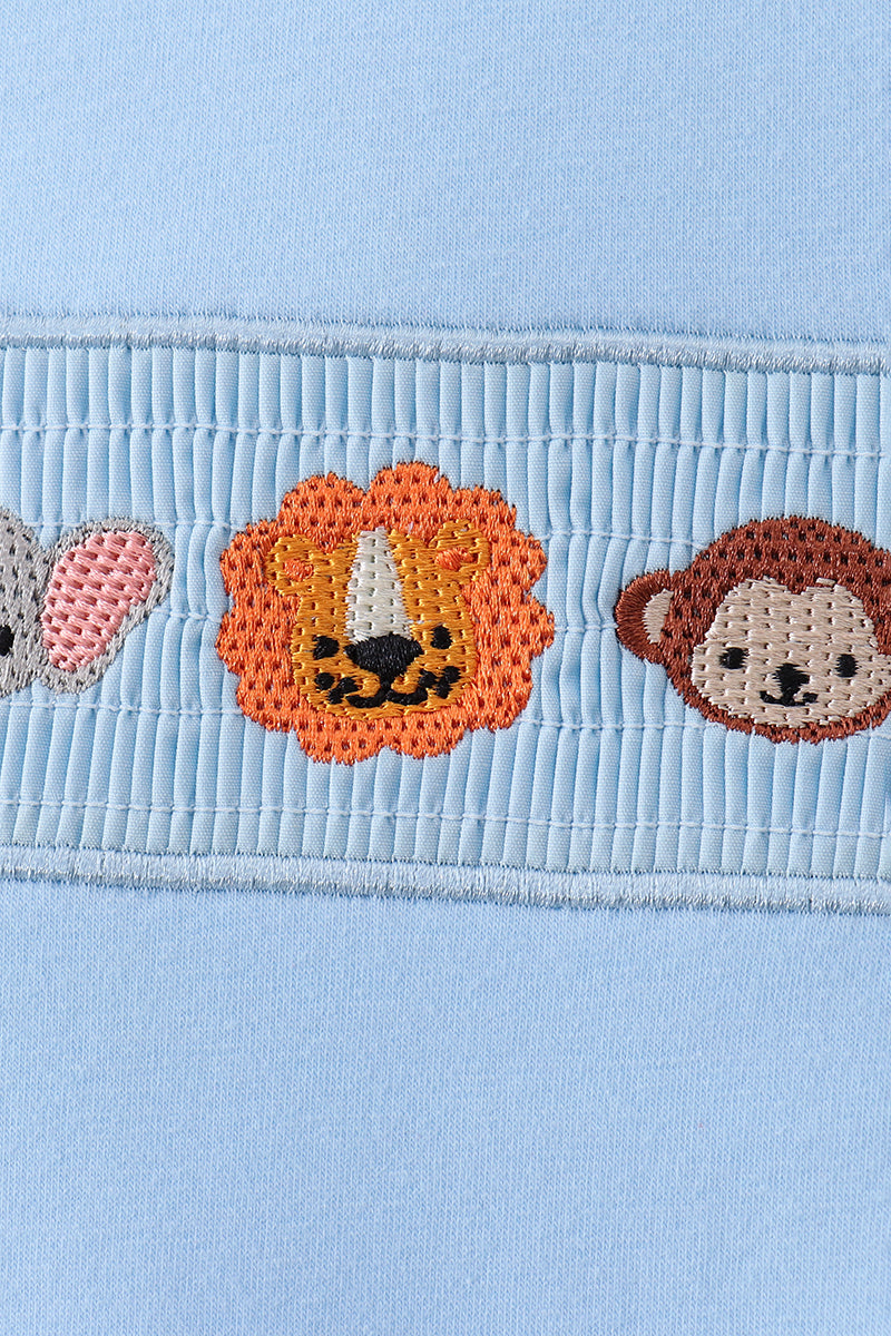 Blue animal smocked top - 12 Months is backordered and will ship as soon as it is back in stock.