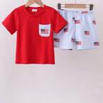 Blue flag embroidery seersucker shorts set - 12 Months is backordered and will ship as soon as it is back in stock.