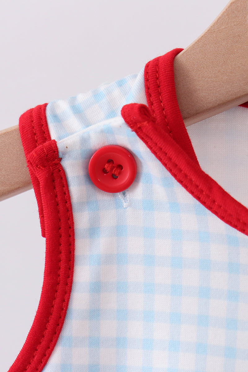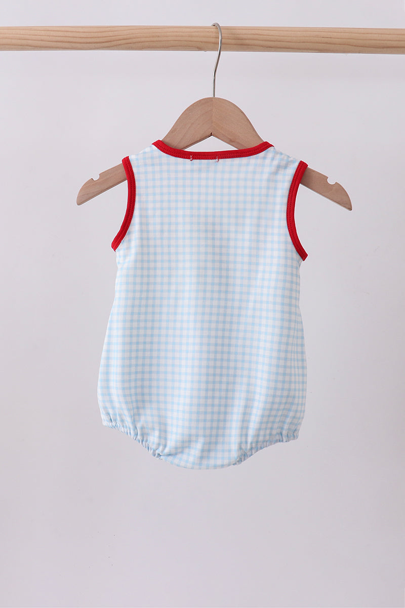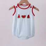 Blue watermelon embroidery bubble - 3 Months is backordered and will ship as soon as it is back in stock.