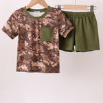 Camouflage print pocket shorts set - 12 Months is backordered and will ship as soon as it is back in stock.