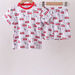 Red fire truck print bamboo pajama set