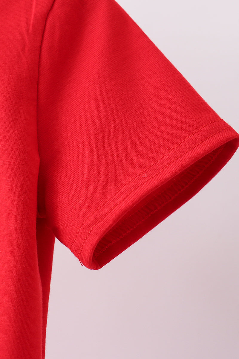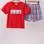 Red sailboat embroidery plaid shorts set