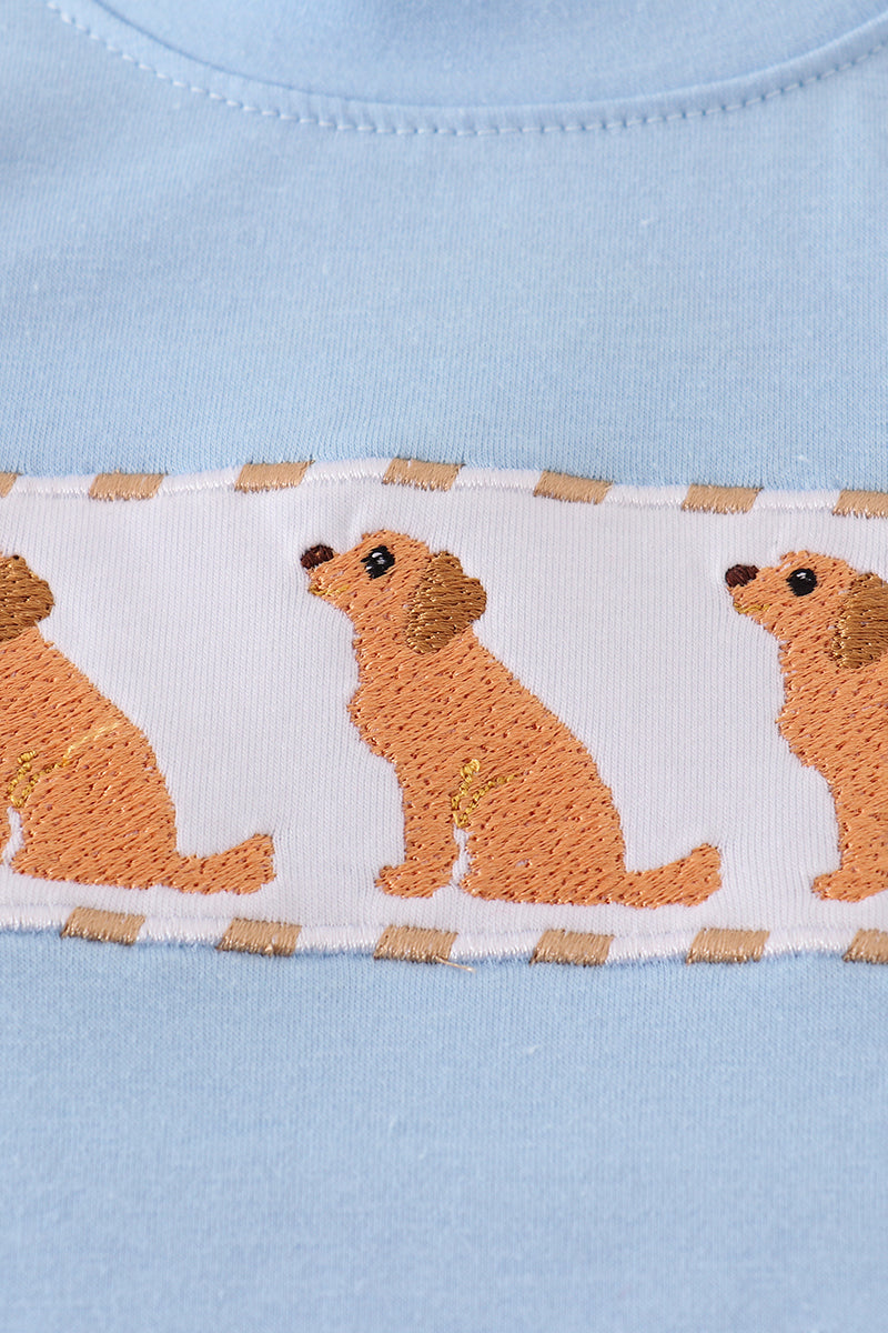 Beige puppy embroidery gingham shorts set - 7 Years is backordered and will ship as soon as it is back in stock.