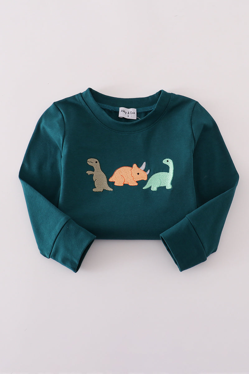 Blue dinosaur embroidery plaid pants set - 5 Years is backordered and will ship as soon as it is back in stock.