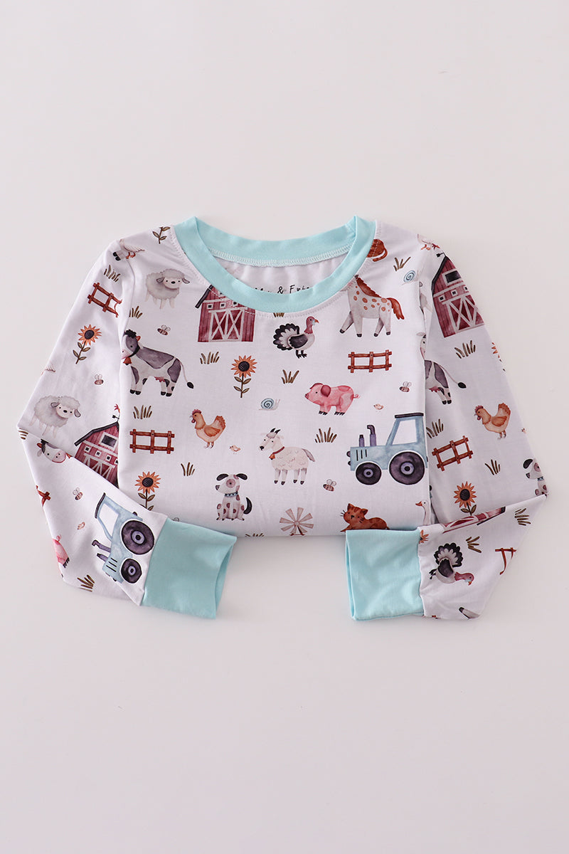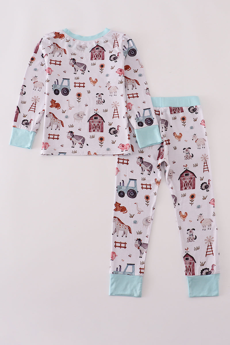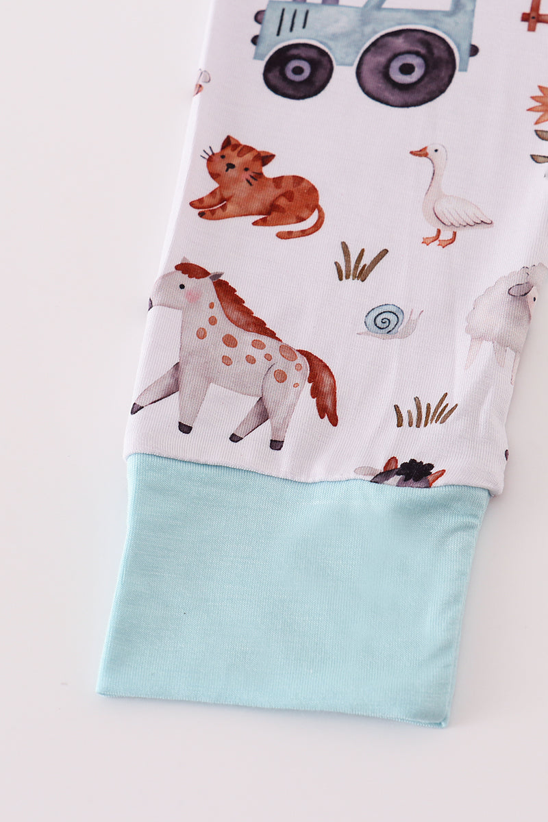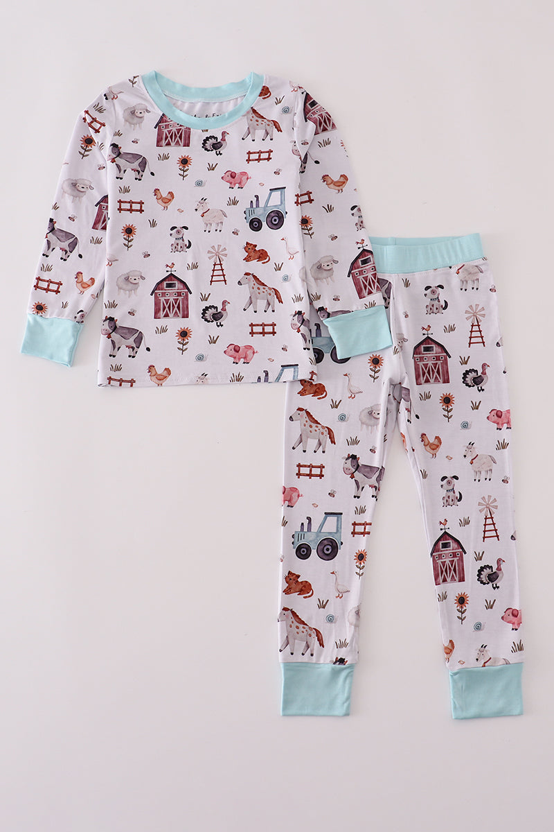 Blue family farm pajamas bamboo pants set
