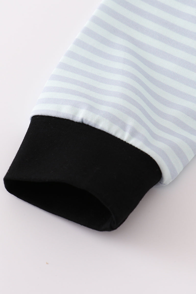 Blue Halloween spider embroidery stripe pants set - 12 Months is backordered and will ship as soon as it is back in stock.