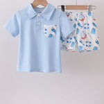 Blue sailboat print shorts set