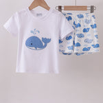 Blue whale applique shorts set