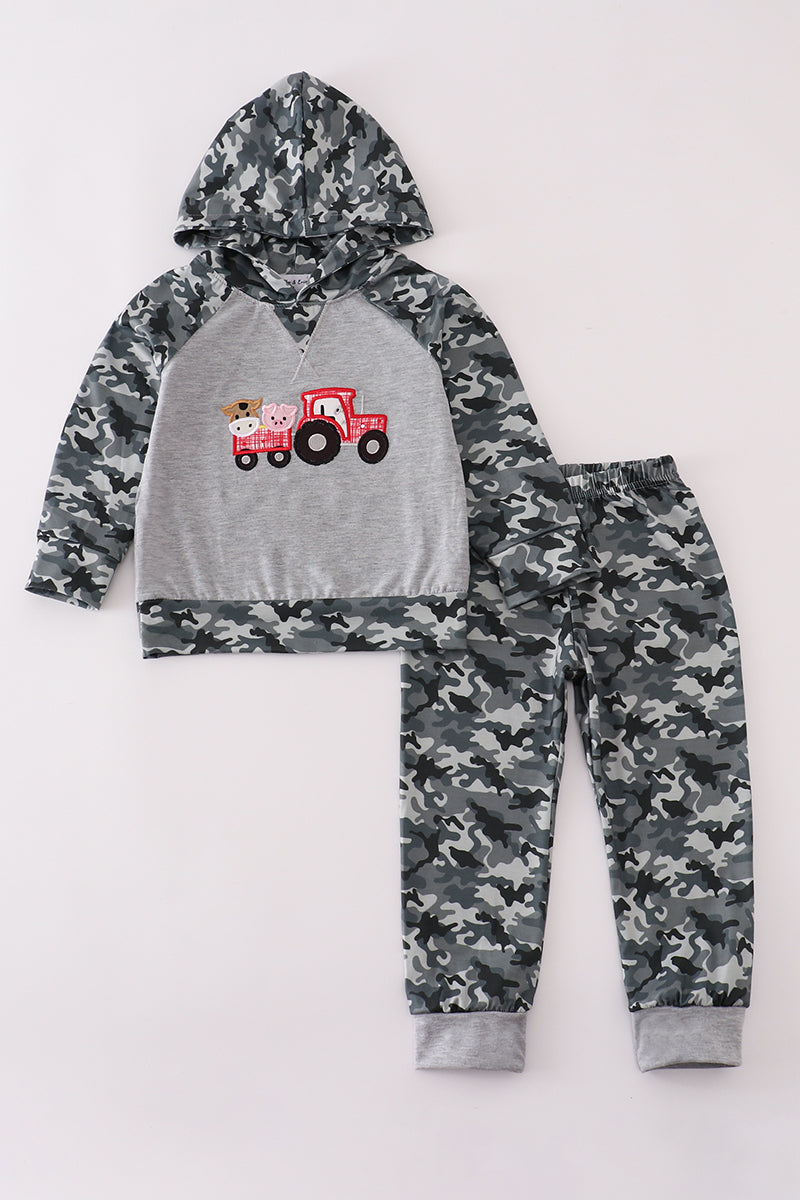 Camouflage farm tractor applique pants set