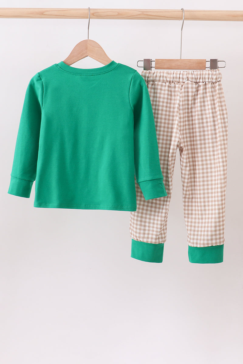 Green gingerbread smocked pants set - 6 Years is backordered and will ship as soon as it is back in stock.