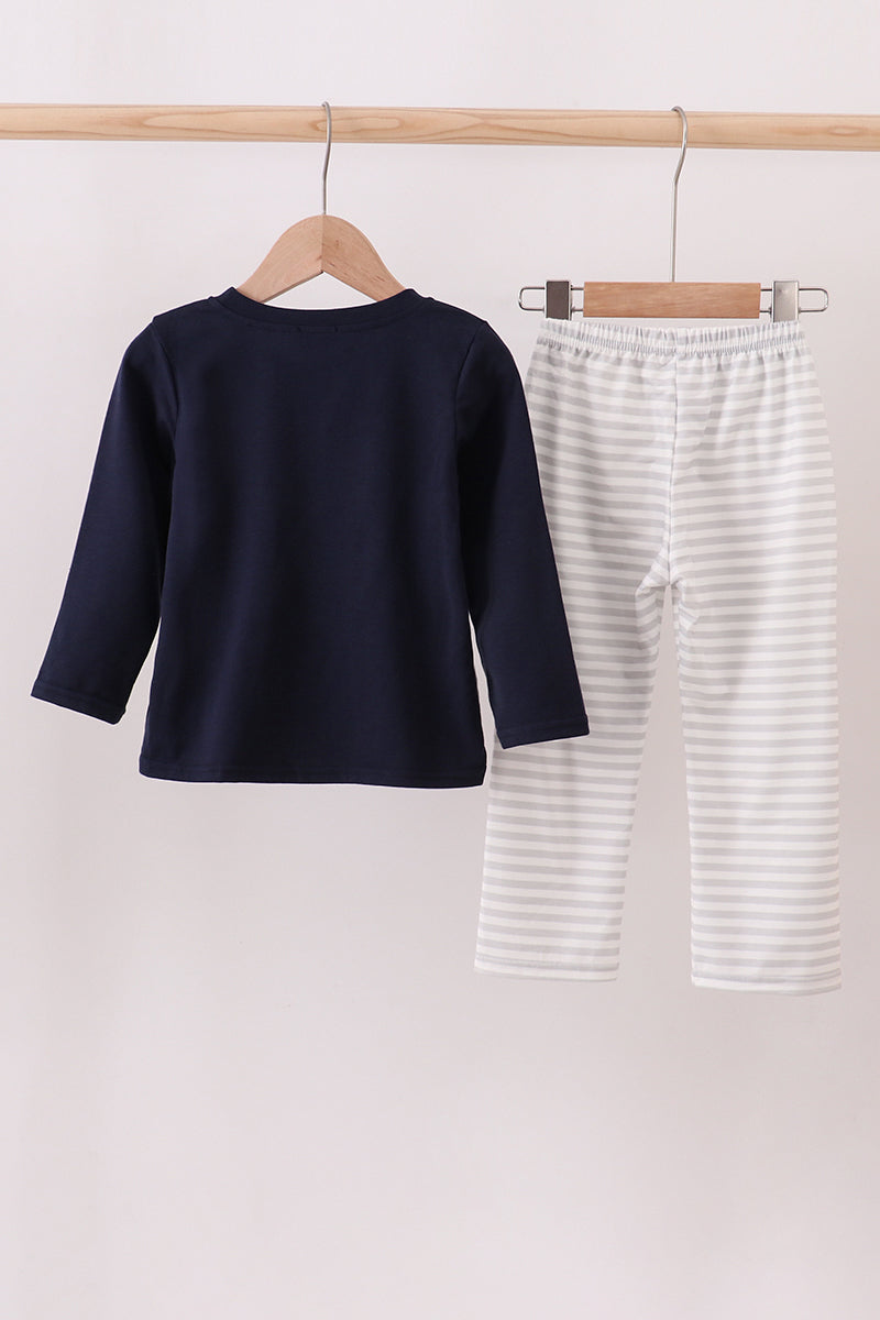 Navy christmas santa claus embroidery stripe pants set - 5 Years is backordered and will ship as soon as it is back in stock.