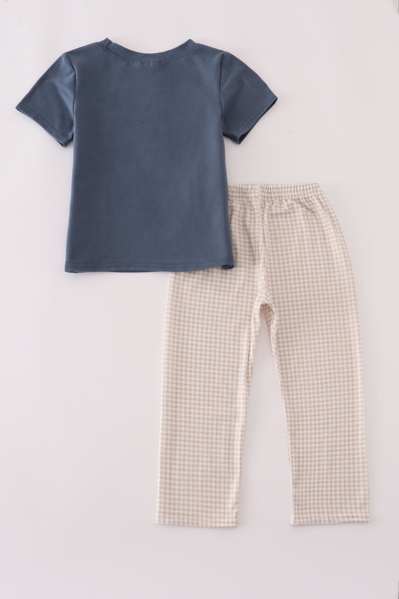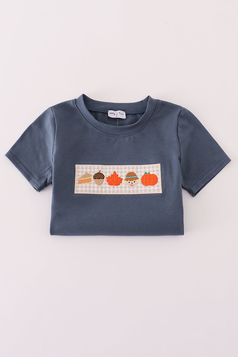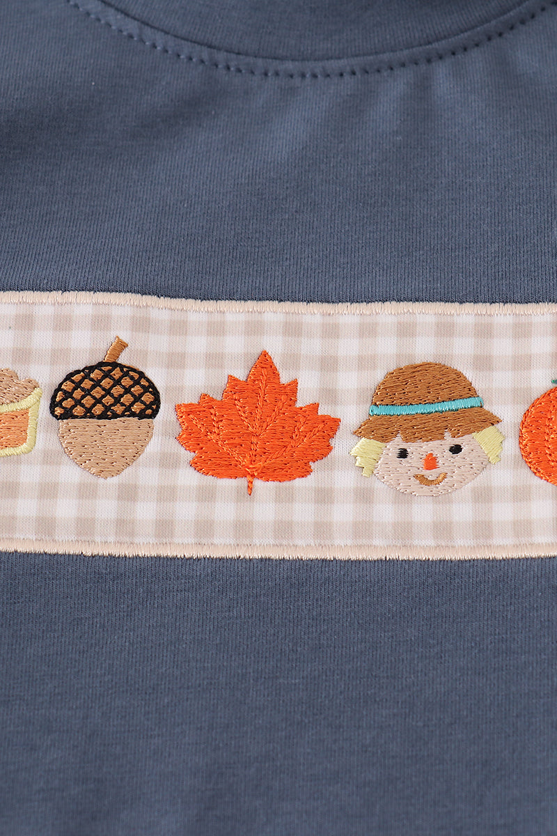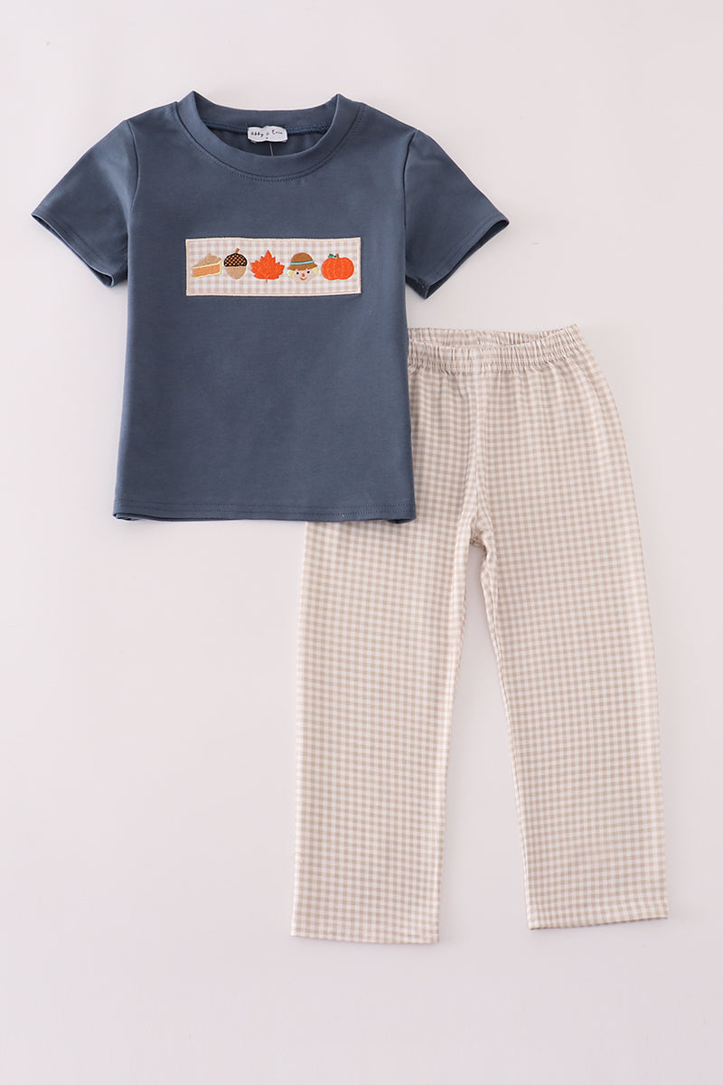 Navy pumpkin embroidery pants set - 12 Years is backordered and will ship as soon as it is back in stock.