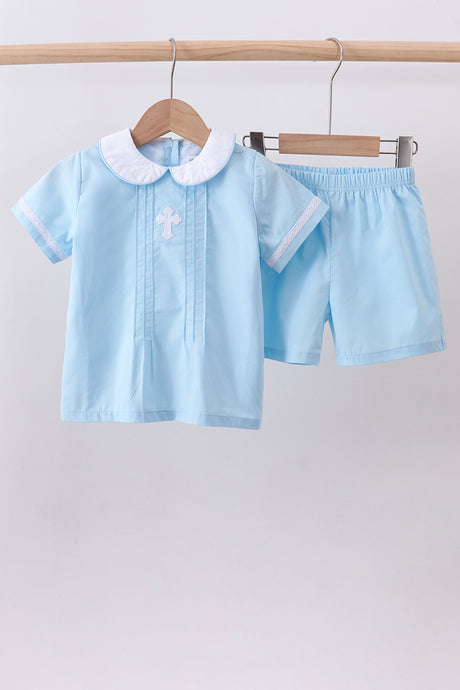 Sage cross embroidery shorts...