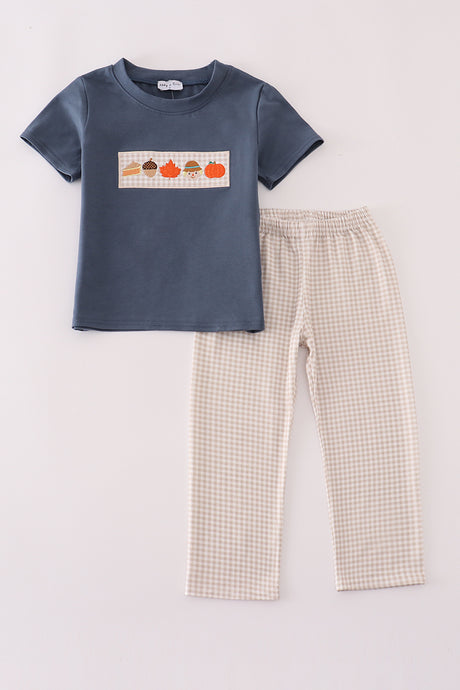 Navy pumpkin embroidery pant...