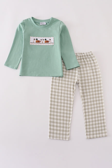 Green hunting print pants se...