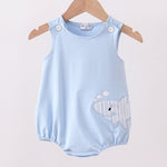 Dive into fun with this adorable blue shark applique bubble! Perfect for little ones who love ocean adventures, this playful piece features a charming shark design that sparks imagination. The soft bubble silhouette offers comfort and ease of movement, making it ideal for playtime or casual wear. Watch your child's face light up as they rock this whimsical underwater-inspired look. A delightful addition to any kid's wardrobe that celebrates their love of the sea!