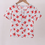 Lobster print muslin top - 12 Months is backordered and will ship as soon as it is back in stock.